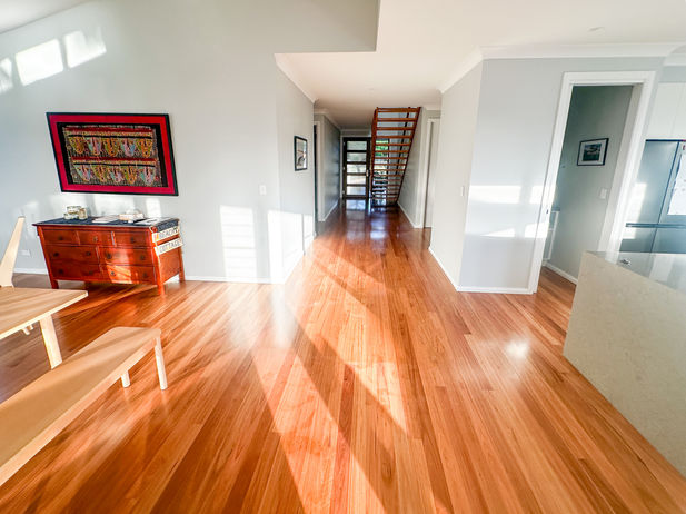 Premium Hardwood Finishes: Blackbutt timber floors and stairs add warmth and durability, enhancing the home's natural aesthetic.